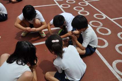 種うえのあと、日の光が差してきたので影遊びをしました。