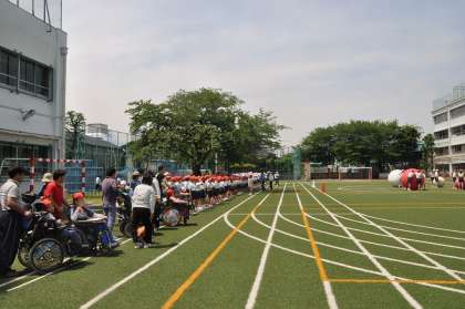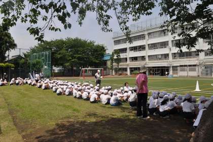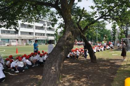 運動会の全体練習3回目が始まります。まず、自分の応援席を確認しました。
