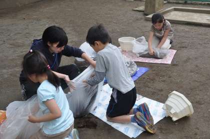 土と肥料を混ぜています。