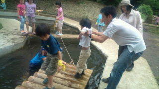 つくし野アスレチックにいます。アスレチックスに挑戦中です。今日は油面小の貸し切り状態です。10:35