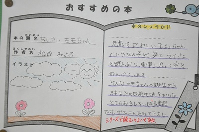 6月は読書推進月間です。その取り組みの一環として、子どもたち一人一人が「おすすめの本」を書いています。
