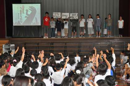 今日のなの花集会は、図書委員会からの発表でした。