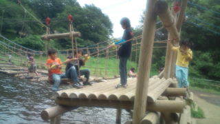 つくし野アスレチックにいます。アスレチックスに挑戦中です。今日は油面小の貸し切り状態です。10:35
