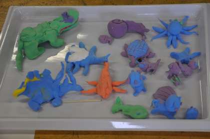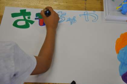 カラフル粘土のお店の商品ができあがったので、看板を作っています。