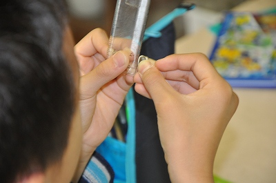 種の大きさを測っている班もあります。