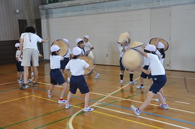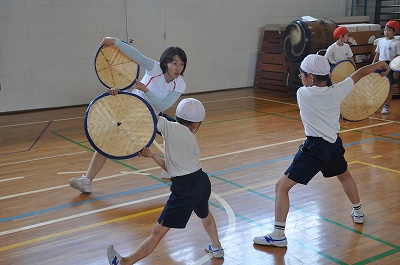花笠音頭の仕上げの一つとして、グループで練習をしています。