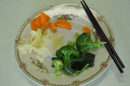 家庭科の調理実習でゆで野菜を作り、食べました。