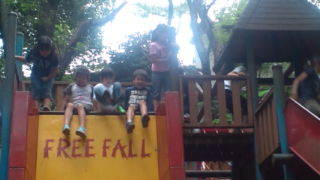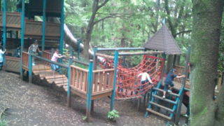 つくし野アスレチックにいます。お昼ご飯が終わりました。もう少しアスレチックスで遊びます。12:10