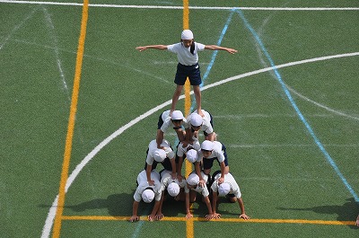 組み体操の仕上げを、入場からおこなっています。