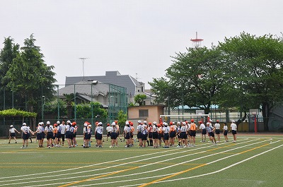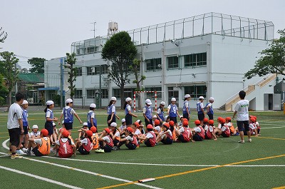 校庭で高学年リレーの練習をしています。