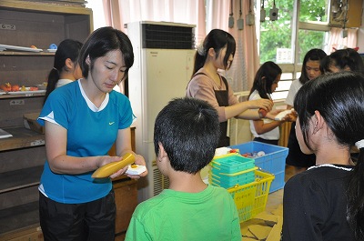 粘土でお菓子作りをします。