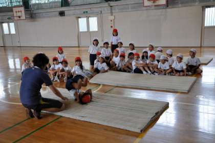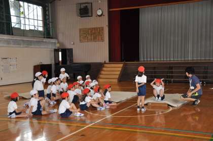 マットで後ろ転がりをやっています。