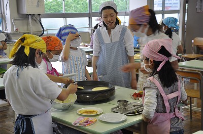 今日はクレープを作っています。