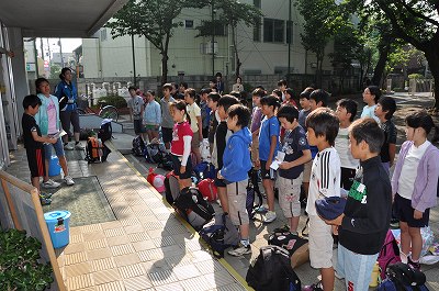 7:30 学校に集合しました。出発式のあとで出発します。