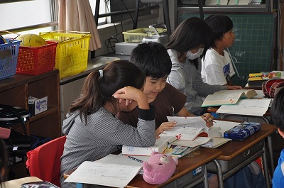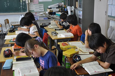 いろいろな意味をもつことばを使って詩を作ります。そこで、まずことばの意味を調べています。
