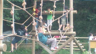 つくし野アスレチックにいます。アスレチックスに挑戦中です。今日は油面小の貸し切り状態です。10:20