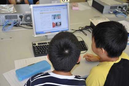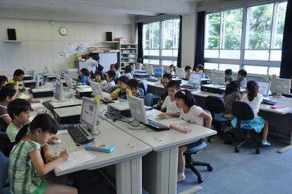 自分たちが育てているトマトについて、インターネットを使って調べています。