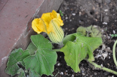 5年生が育てているカボチャが花を咲かせています。