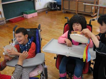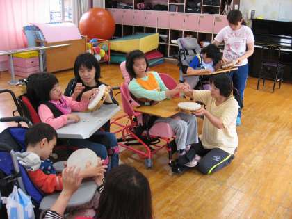 歌に合わせて楽器で音を出しています。