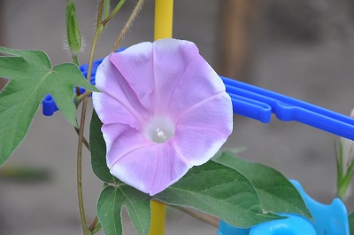 1年生が種から育ててきたあさがおに、次々と花が咲き始めました。
