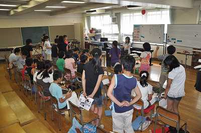 合奏をするために楽器の役割を決めています。