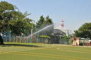 朝から強い日差しが照りつけています。気温も高くなってきましたので、校庭に散水しています。