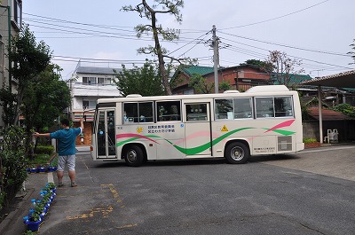 わかたけ学級の子どもたちがバスに乗って下校します。