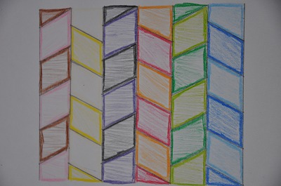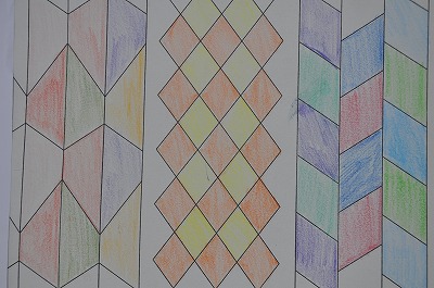 同じ形、面積の図形をしきつめ、色を塗りました。