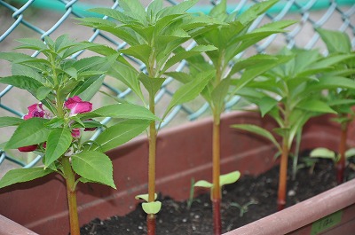 3年生が種をまいて育てたホウセンカです。花が咲いてきました。