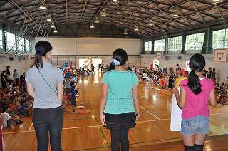 今日のなの花タイムは、集会委員会によるクイズ集会です。いつもの縦割り班の場所にいます。