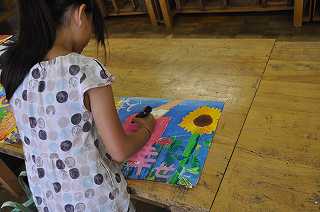 ポスターを完成させるために、頑張って描いています。