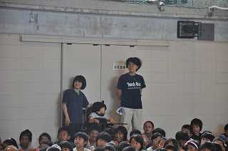 集会の終了後は、みんなでいっしょに教室に戻ります。