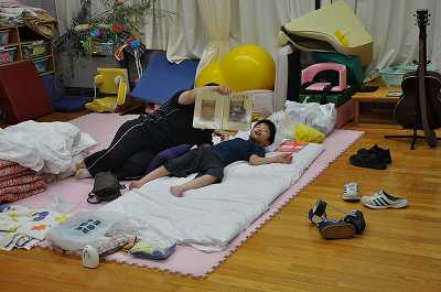 楽しかった花火大会も終わり、就寝準備をし、本を読んでもらっています。