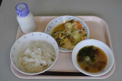今日は暑い中でも食欲をそそるカレーあんかけです。カレイはベーリング海で捕れた魚です。さて、ベーリング海というのはどこでしょうか?