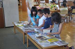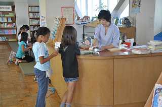 図書支援員の指導のもとで、本を選んだり、借りたりしています。