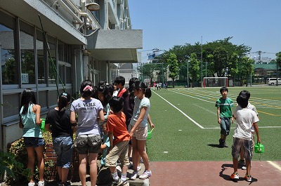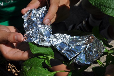 子どもたちが育てたジャガイモを使って光合成の実験をしています。