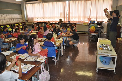「はるはる おはながみのえ」で作品を作ります。最初におはながみのふわふわ感を味わっています。