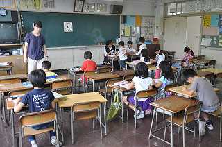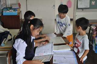 昨日に引き続き、中央中の1年生が小一の子どもたちの勉強を見てくれました。