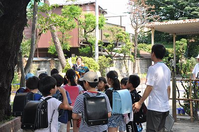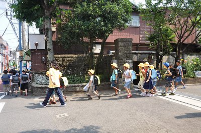 大型台風の接近という想定で地域班による集団下校をしています。この班は、児童館行きます。