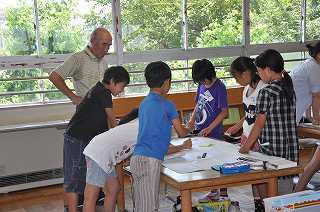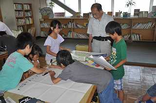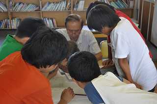 フィールドワークを終えた班は、図書室で班ごとに調べてきたことをまとめています。