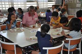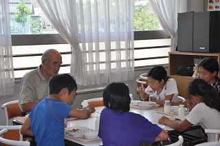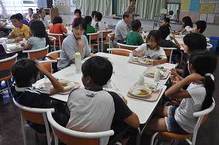 お昼は、ランチルームで会食をしています。