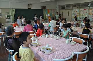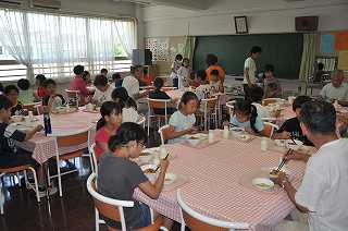 子どもたちがお世話になった地域の皆さんと会食をしています。