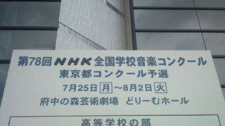 NHKコンクール東京都予選の会場「府中の森芸術劇場」にいます。子どもたちが座席につきました。10:40にコンクールが始まります。