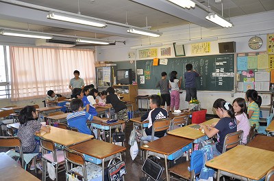 活動の反省をしています。栽培委員会は、省エネやエコの推進活動もしています。