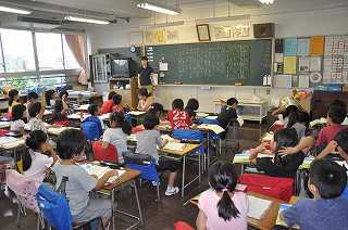 知っていることばをみんなで考え、ノートに書いています。