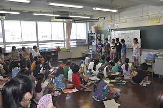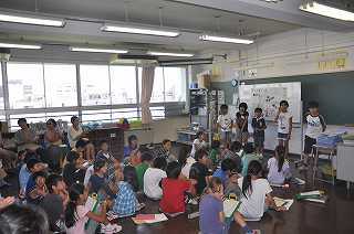 まとめた資料をもとに、発表会をしています。保護者の皆さんもたくさん参加してくださいました。