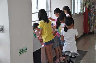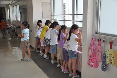 各学年の2組の子どもたちが、給食後に歯磨きをしています。