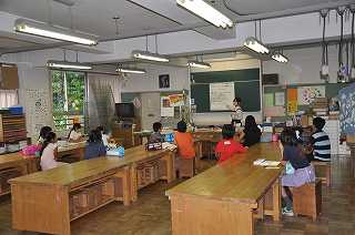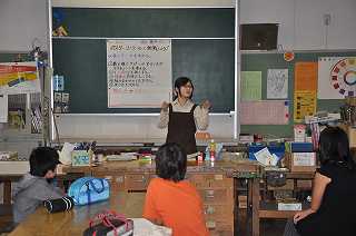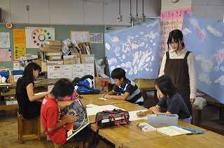 明るい選挙のポスターを作ります。まず、書き方を確認しています。