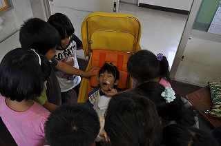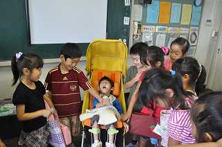 わかたけの2年生が本校の2年生の教室に、自己紹介カードを届けに行きました。