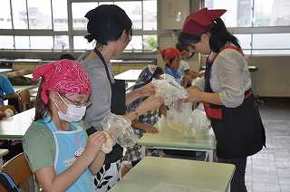 ナン作りが始まりました。まず、粉に水を加えよく練っていきます。